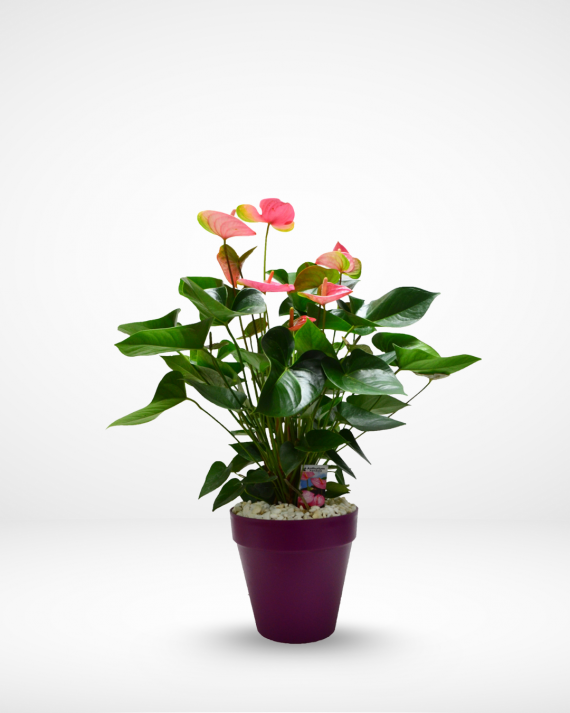 What is a better way to express your love than with a dazzling Anthurium of vibrant red heart-shaped blooms and dark green heart-shaped leaves.