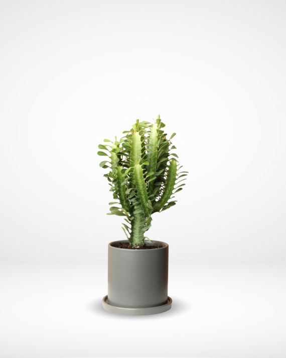 The African Milk Tree (Euphorbia trigona) is a tall, spiny succulent native to Africa, known for its upright, cactus-like stems. It thrives in bright, indirect light and is easy to care for, though its milky sap is toxic and can irritate the skin. Ideal for warm, sunny environments, it adds a unique, architectural look to indoor spaces.
