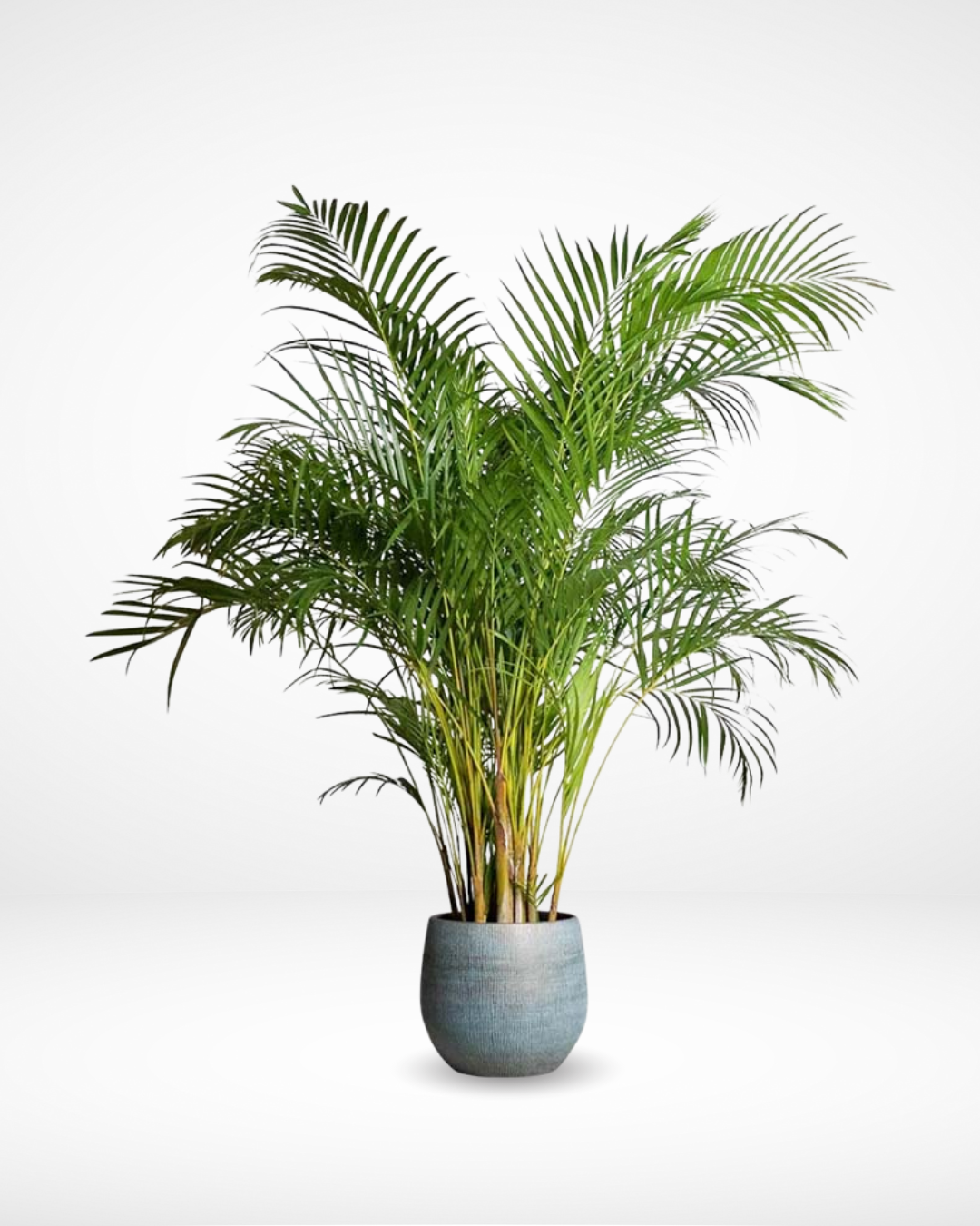 Areca Palm is a popular indoor plant known for its feathery, arching fronds that add a tropical touch to any space. It thrives in bright, indirect light and prefers consistently moist, well-drained soil. The Areca Palm is low-maintenance, making it an ideal choice for home or office environments. It’s non-toxic to pets, making it safe for households with animals.
