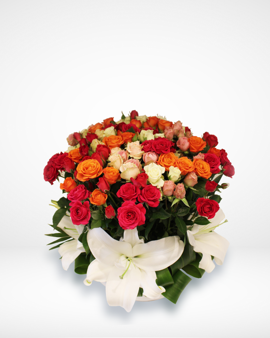 Use this mixture of colored baby rose arrangement to add some colors to your house.
