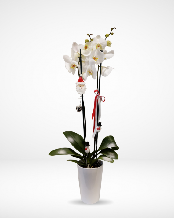 A special orchid plant decorated with red ribbons for this festive season.