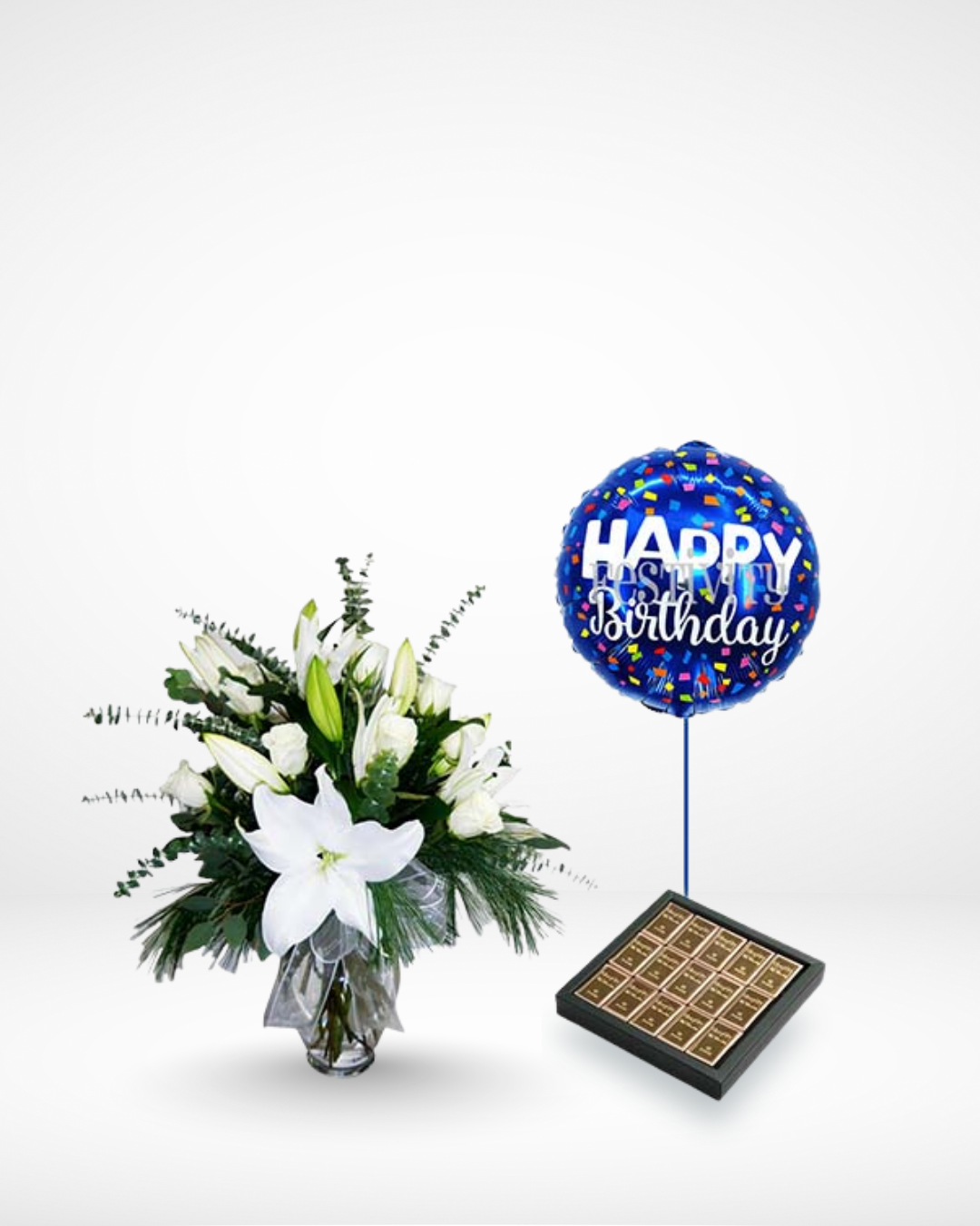 Floral Vase with a Balloon and Patchi’s 15 pcs of Lingots