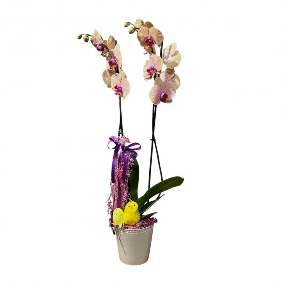 A graceful orchid, a golden duckling, and a whisper of Easter charm.