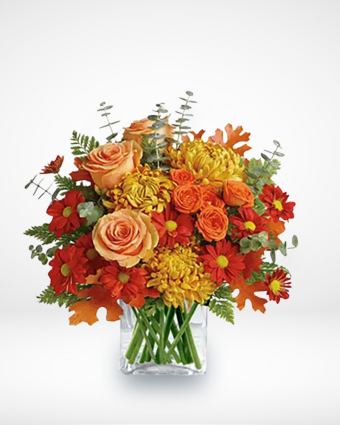 Box mixed with 30 colorful autumn flower and a touch of white roses