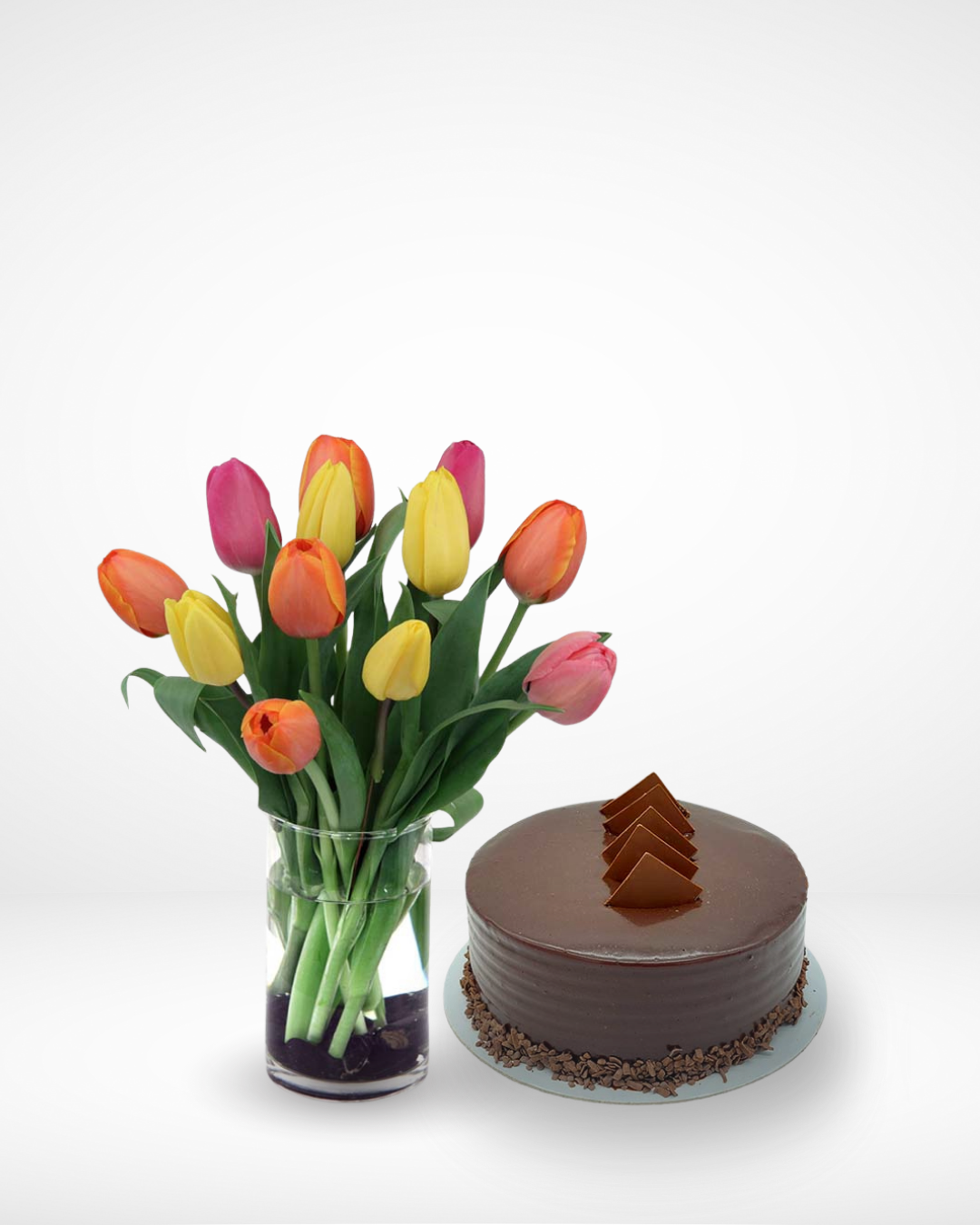12 Colored Tulips with a Cake