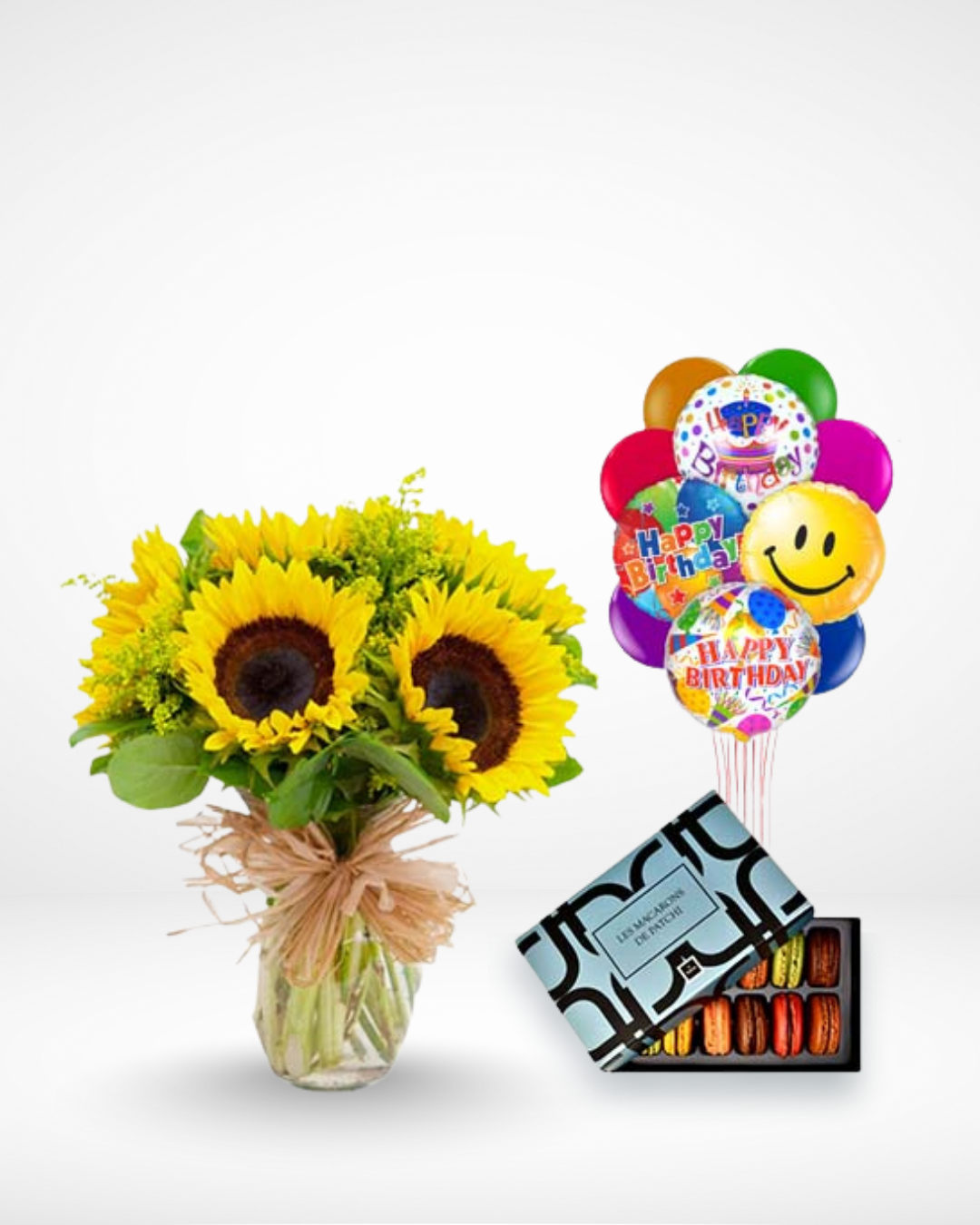 Sunflower vase with 12 pcs Macaron and Birthday Bundle Balloon