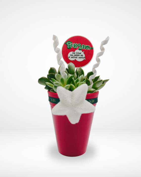 A succulent plant in a decorated pot. Give the gift of good cheer in a bold, festive red! A bright, cheerful, and lasting gift that embodies the holiday spirit! We guarantee same day delivery in Beirut and all over Lebanon.