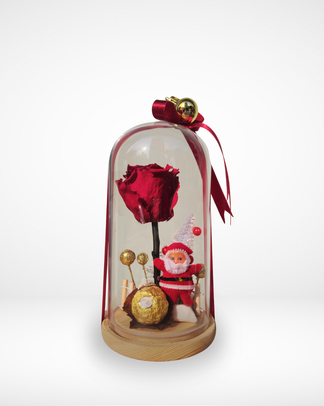 A truly Everlasting gift! This stunning red rose sits with a jolly Santa figurine and a sweet chocolate treat. An added cheer to cherish this Christmas and beyond. Order yours today and benefit from same day delivery all over Lebanon.