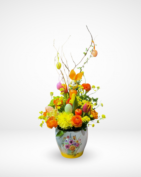This elegant and festive display captures the essence of spring, blending natural beauty with the playful charm of Easter. Same day delivery all over Lebanon.