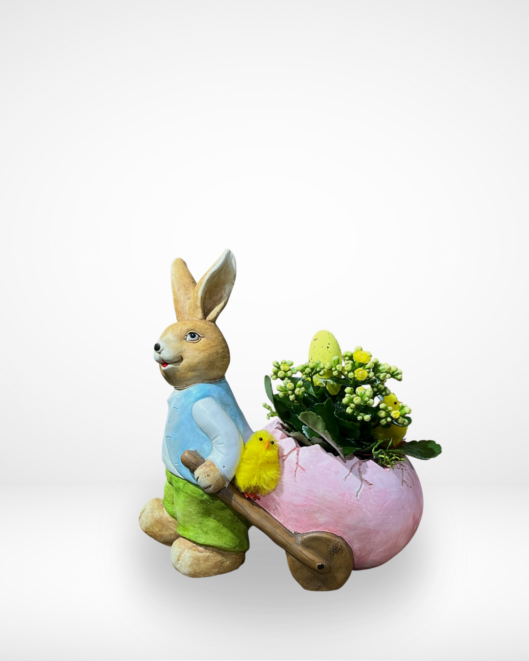 A bunny carefully carrying a box filled with bright yellow flowers, bringing joy wherever it lands. Same day delivery all over Lebanon.
