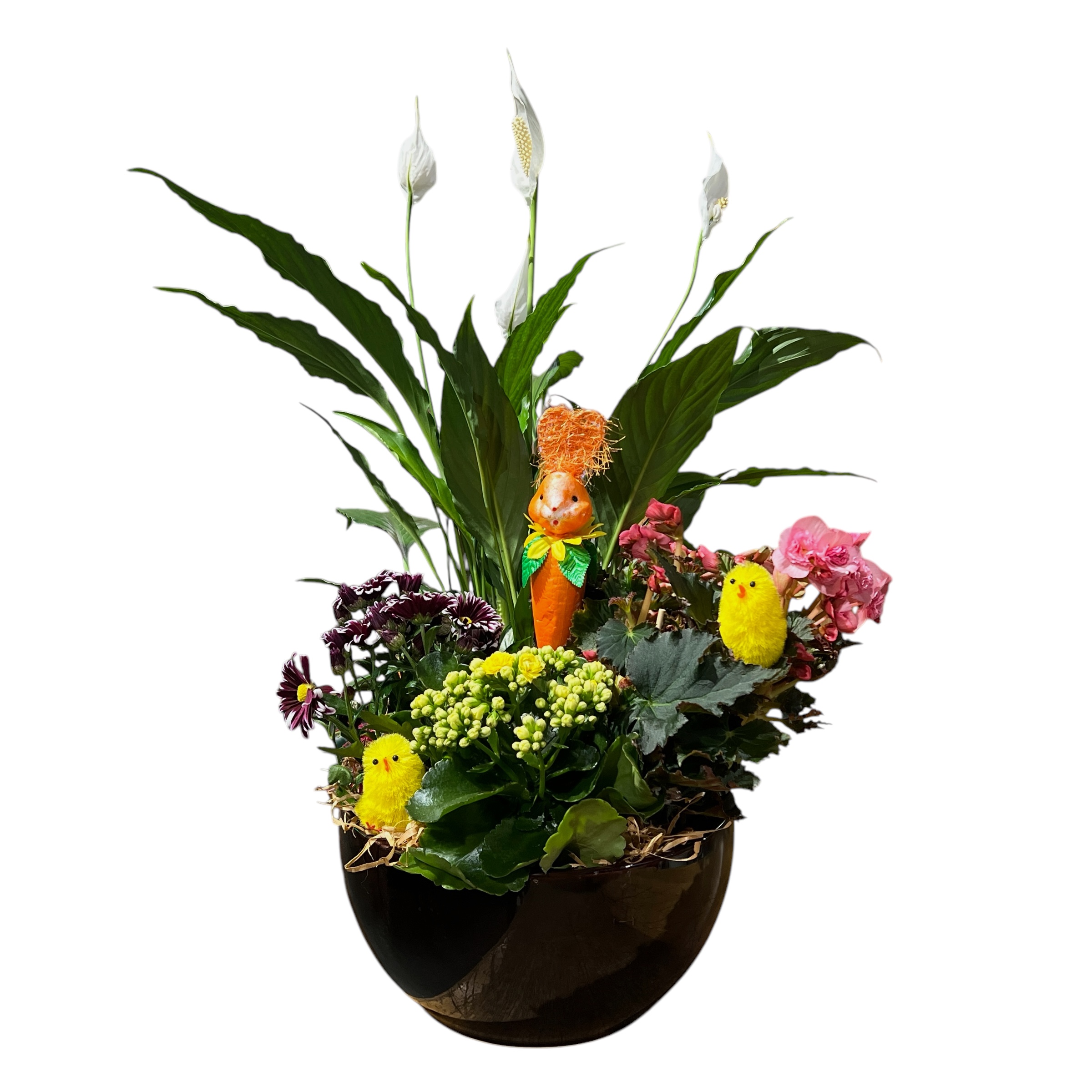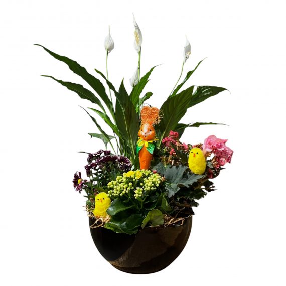 This delightful arrangement features vibrant, fresh spring flowers and enhanced with whimsical Easter decorations. Same day delivery all over Lebanon.