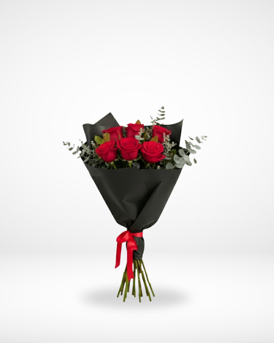 6 Red Roses In An Elegant Black Emballage