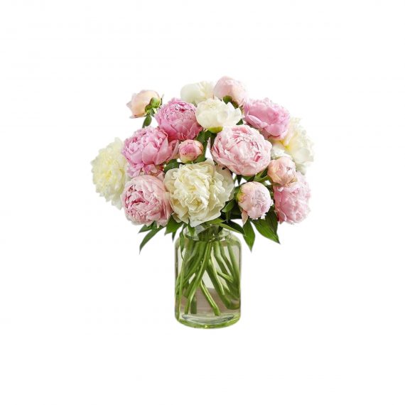 A Bouquet of 12 Pink and White Peonies in a Vase.