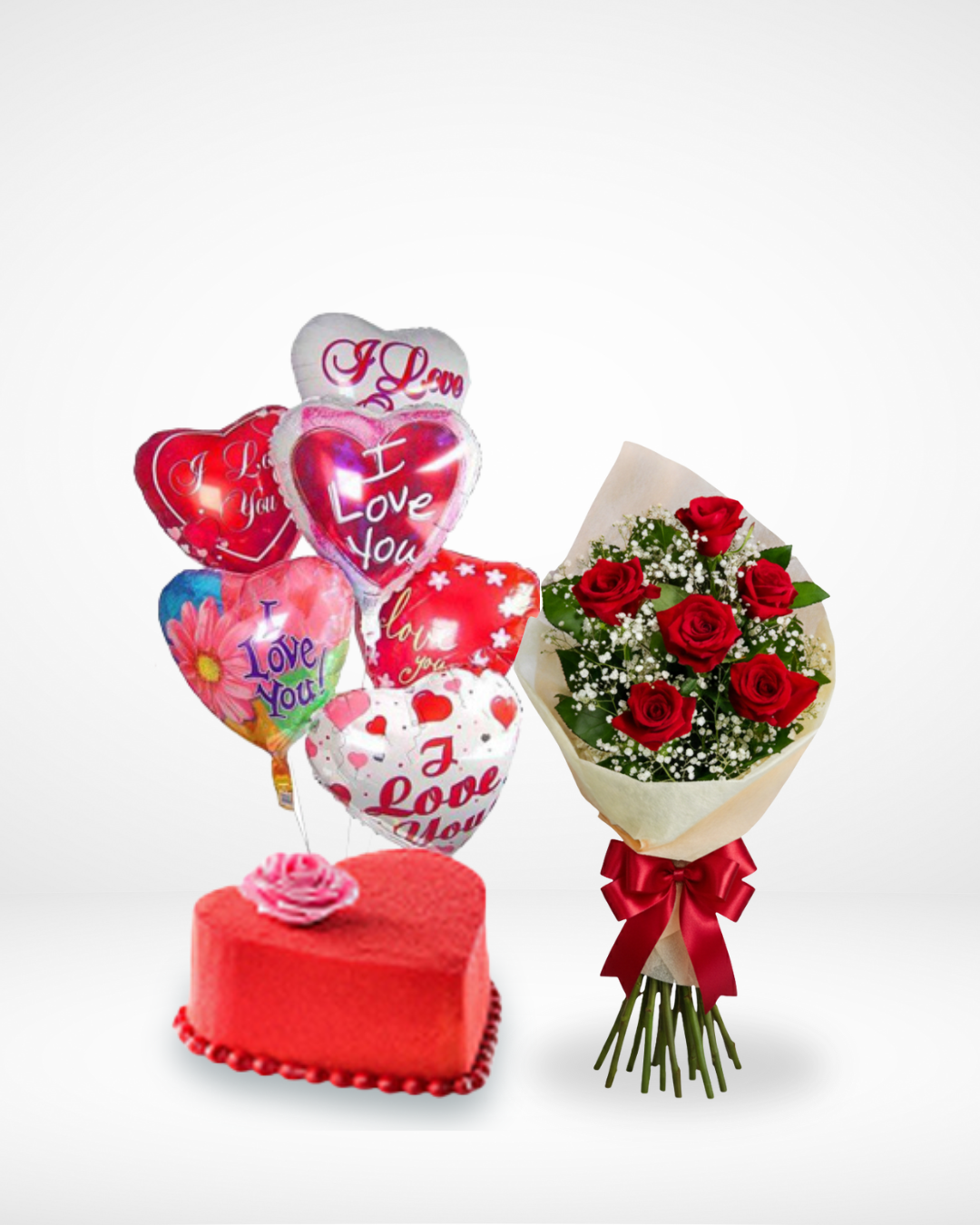 Red Velvet Cake – Love Bundle Balloons – 6 Red Roses Bouquet