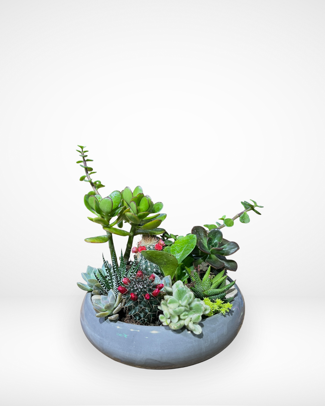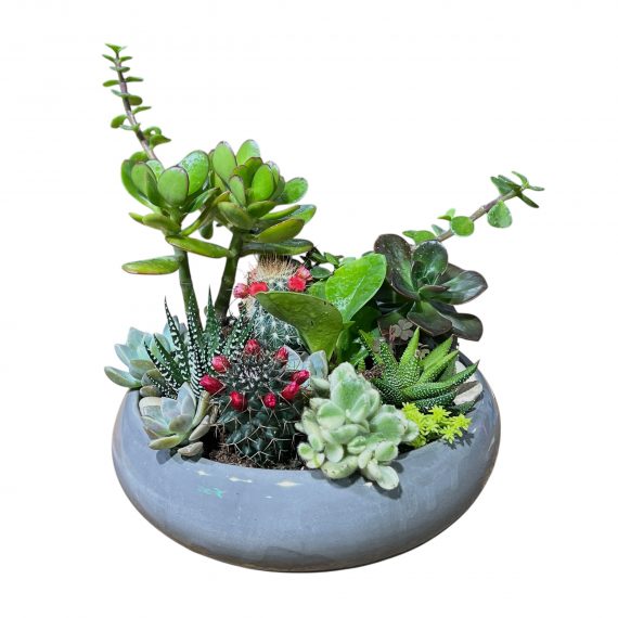 A collection of tiny succulents, beautifully arranged in a sleek ceramic pot. Each plant brings its own shape, color, and personality. Same day delivery all over Lebanon.