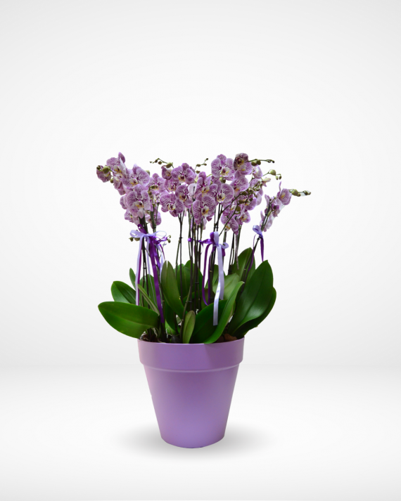 6 Double-stemmed Purple Orchids in a Pot
