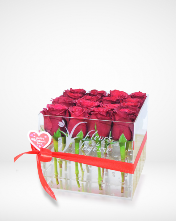 16 Red Roses in a Square Shape
