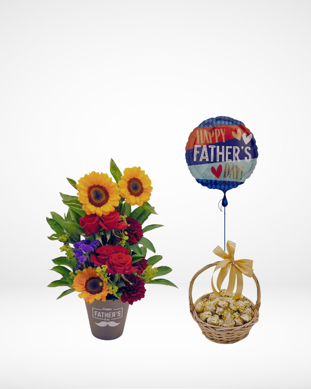Mix flowers in a pot with our delicious 500g chocolate and a balloon.