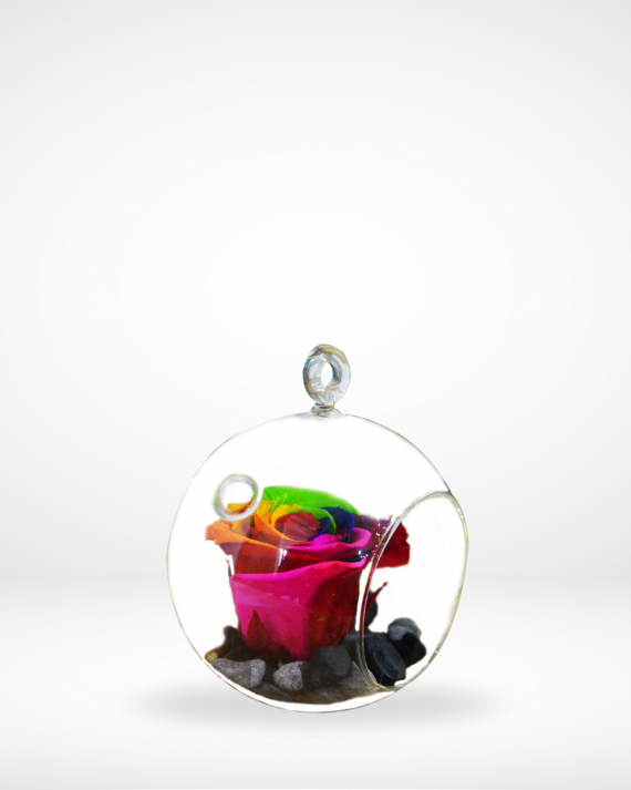 A Preserved Rainbow Rose in a Circle Shaped Glass