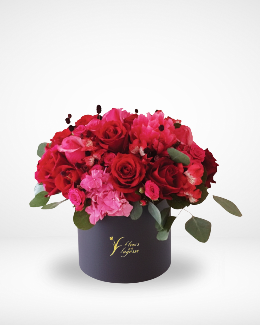 Red roses, combined with some blossoming flowers in a classy box can help you express your feelings.