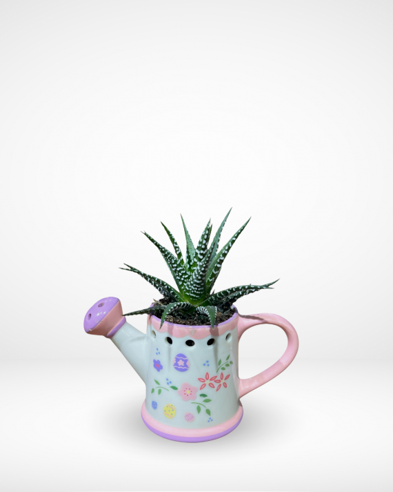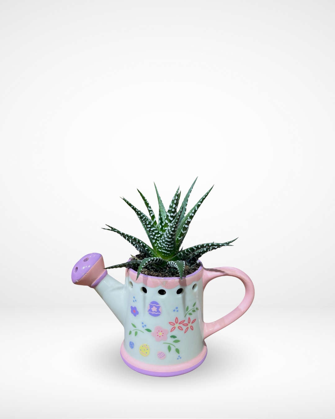 Aloe in a charming watering can, perfect for adding a splash of green to your indoors.