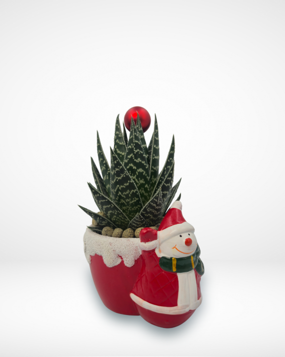 This snowy Aloe brings joy of winter indoors! The cheerful red pot and happy snowman makes it a perfect, long-lasting piece of holiday décor. Benefit from our same day delivery in Beirut and all over Lebanon.