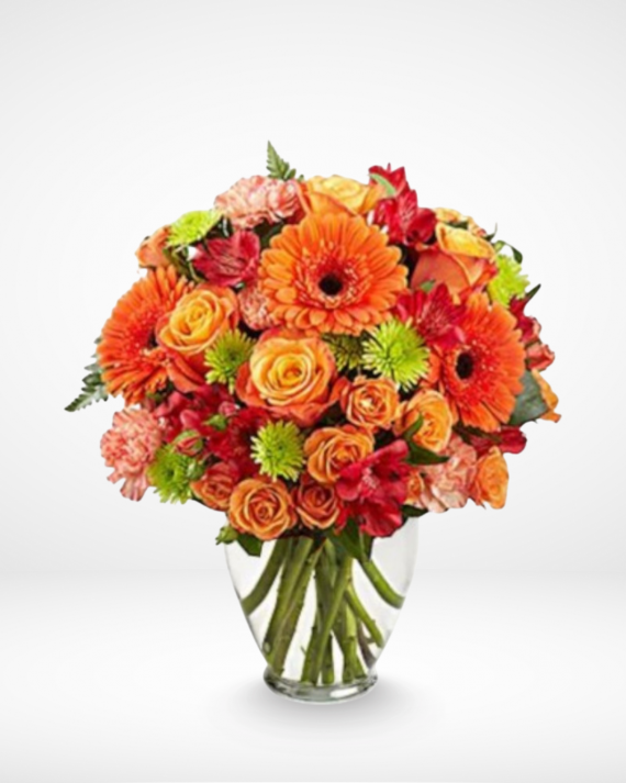 Like a blazing sunset, orange flowers and red roses remind us that beauty can be found in the boldest moments! Same day delivery in Beirut and all over Lebanon!