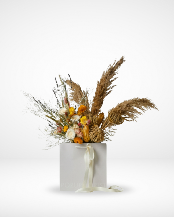 A curated box of dried florals in warm, sun-faded tones, thoughtfully arranged to rest beautifully in place and bring quiet warmth to any space. Delivery all over Lebanon.
