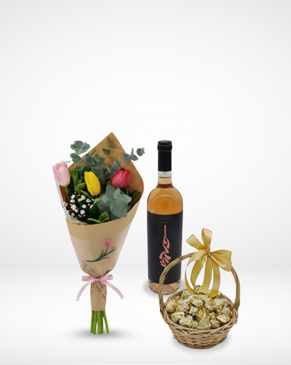 3 Tulips with Wardy Rosé Wine and 500g of Chocolate