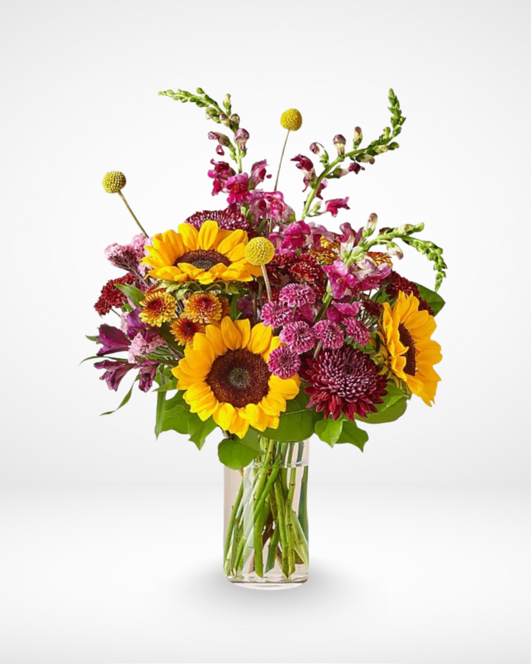 When purple blooms meet sunflowers, the garden dances with the elegance of royalty and the warmth of sunlight! Same day delivery in Beirut and all over Lebanon!