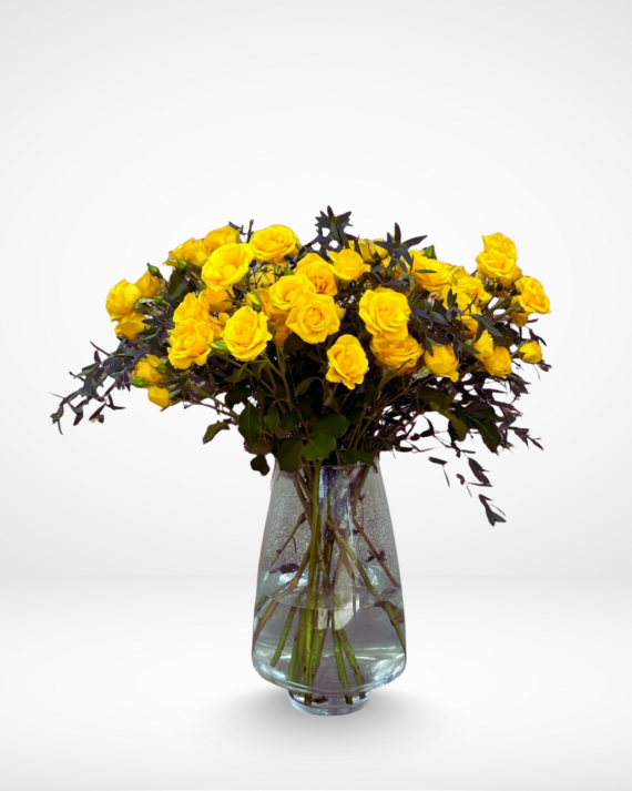 Vase with 20 yellow baby roses
