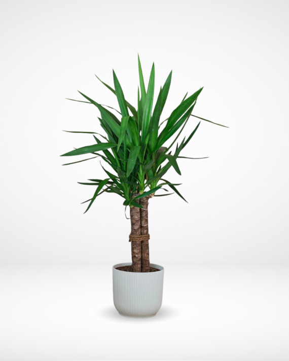 The Yucca plant is a hardy, drought-tolerant succulent native to the Americas. Known for its spiky, sword-like leaves and tall, dramatic flower spikes, Yucca adds a striking architectural element to both indoor and outdoor spaces. It thrives in well-draining soil and full sun, making it ideal for warm, dry environments. Yucca is low-maintenance, requiring infrequent watering, especially during the dormant winter months. While it’s a great addition to xeriscapes or as a houseplant, it should be kept in a location where its sharp leaves won’t pose a hazard.